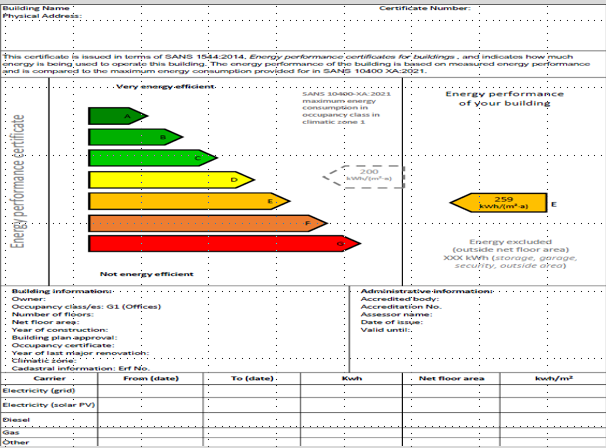 SANEDI is also tasked with maintaining the National Building Energy Performance Register showing the particulars of all valid EPCs